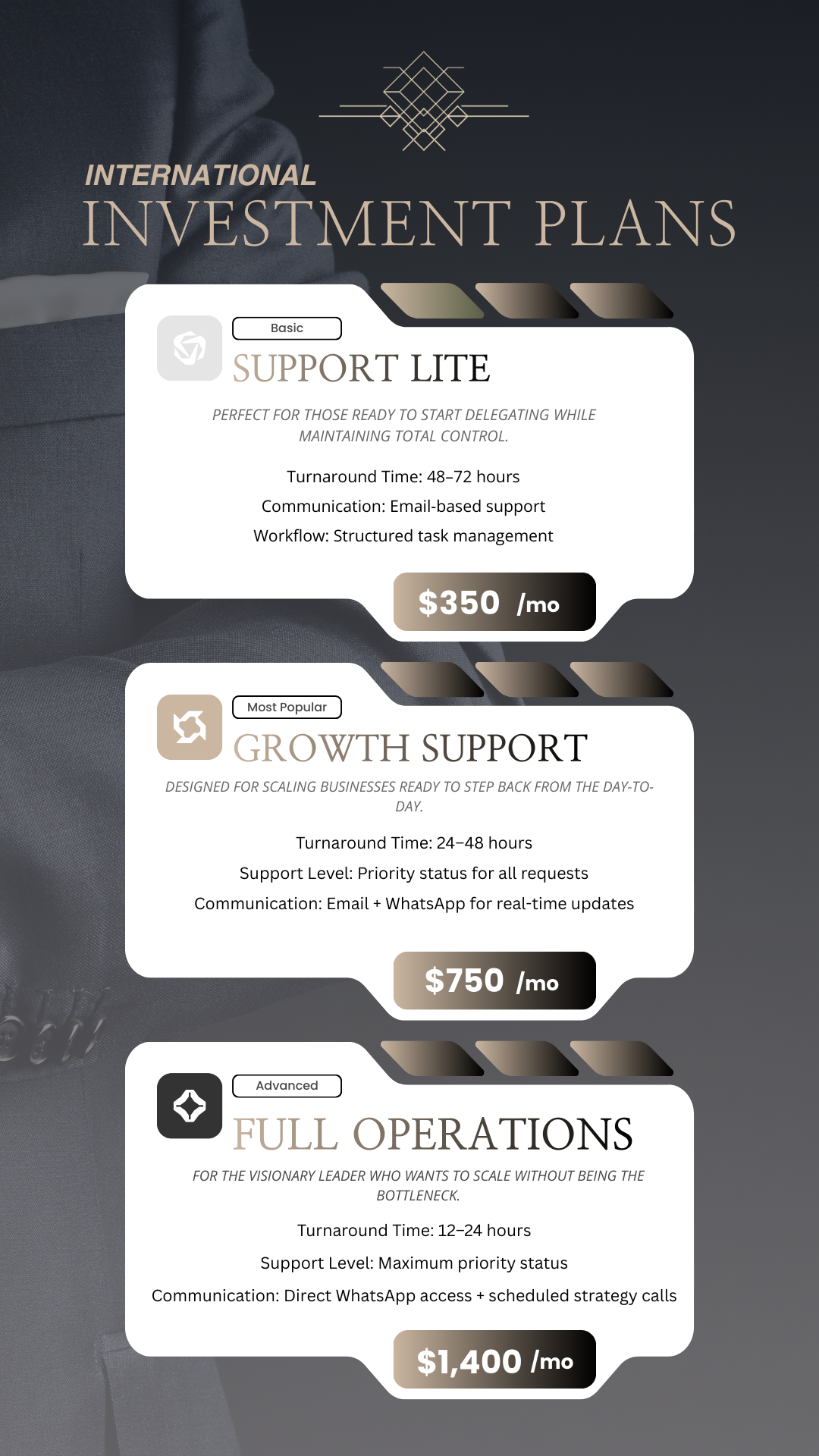 Certain services fall outside standard monthly support and are quoted separately.