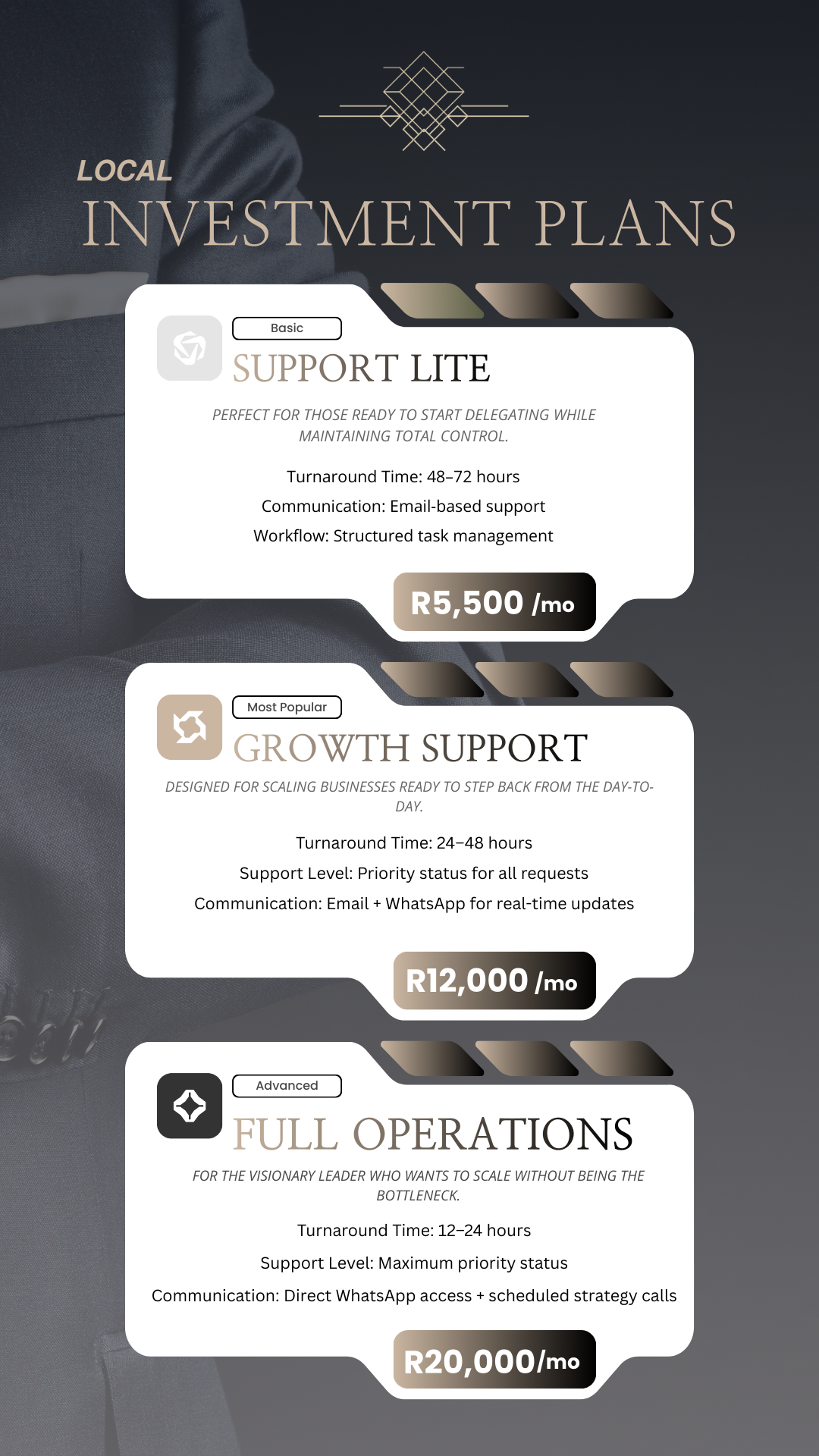 Certain services fall outside standard monthly support and are quoted separately.